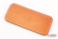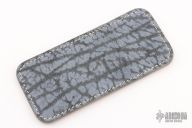 This leather slip sheath by Robertson Leather Works features Blue Giraffe skin. It is 5.5" long by 2.5" wide. New from maker at the 2023 Blade Show West.