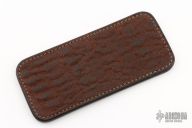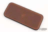 This leather slip sheath by Robertson Leather Works features Brown Shark skin. It is 5.5" long by 2.5" wide. New from maker at the 2023 Blade Show West.