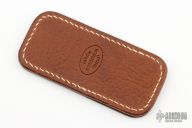 This leather slip sheath by Robertson Leather Works features Lizard Skin. It is 3.75" long by 1.75" wide. New from maker at the 2023 Blade Show West.