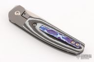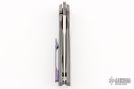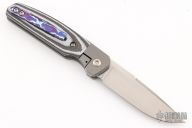 This Mula Front Flipper by Enrique Pena features a hand rub satin finished drop point blade with swedge, notched thumbrest and front flipper. The handle has a blasted titanium frame with white/black carbon scales, and a tip up mokuti clip. Nice detent, lockup and blade seating. Comes with zippered case. New from maker at the 2023 Blade Show West.