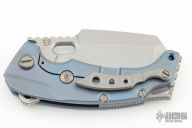The PMP Titano, a true beast among folding knives.  The knife has a stonewashed tanto blade with thumbhole and notched thumbrest.  The handle features an anodized titanium frame with blasted titanium hardware.  Includes a pelican style card case and COA.  Excellent Condition.