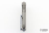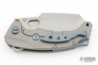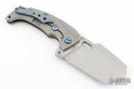 The PMP Titano, a true beast among folding knives.  The knife has a stonewashed tanto blade with thumbhole and notched thumbrest.  The handle features a titanium frame with anodized titanium hardware.  Includes a pelican style card case and COA.  Excellent Condition.