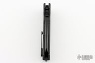 The PMP Grizzly, a true beast among folding knives. The knife features a black drop point blade with a notched thumbrest.  The handle has a black titanium frame with matching backspacer and a tip-up pocket clip. Includes a pelican style hard case and COA.  Excellent Condition.