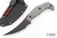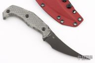 This Yummy by Bastinelli Knives features a black blade with a mortis tang construction. .156" Blade Stock. .991" Blade Depth. The handle has black micarta scales. Includes a kydex sheath. Marked "P" for prototype. New from Maker!
