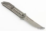 Todd Begg Knives is happy to announce the formation of the new Steelcraft Series with the release of the first full production knife, The Sun Tzu Kwaiken. With the Sun Tzu Kwaiken they have joined forces with Reate Knives to bring you the highest quality in design and function that they feel is attainable in a production knife. All of the Steelcraft Series knives will be designed with an emphases on precision workmanship to showcase that a production knife can truly be a thing of excellence. They have made all the necessary steps to insure that Steelcraft will deliver a knife that will stand up to scrutiny and surpass all prior experience of what a production knife can be. 6Al4V titanium handle CPM-S35VN blade steel Framelock with steel lock tip insert 3D machined pocket clip Ceramic detent Ceramic IKBS Design won “Best Tactical Folder” at the 2014 Knifemakers Guild show. Excellent condition. Comes with original box and papers.