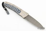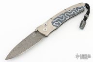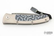The Marlin is a stunning piece, worthy of the toughest tasks and finest collections. The blade is crafted from hand-forged stainless 'Ripple' damascus steel, with over 140 layers in a pattern that never repeats. Handle is built from aerospace grade titanium, with inlays of our 100,000 year old fossil coral salvaged from an abandoned lime pit in the Florida Keys. Fittings are tempered stainless steel with inlaid sapphires, and the lanyard is sterling silver on tactical cord. Includes our ClipCase for safe and secure carry. Comes with original box, and papers. Excellent condition.