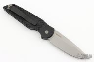This TR-3 by Pro-Tech Knives features stonewashed magnacut spear point blade. The handle has a black milled aluminum frame with a black steel pocket clip. Includes the original box and papers. Excellent condition.