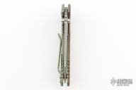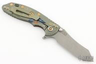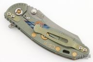 This XM-18 Containment Series by Rick Hinderer features a working finished blade with notched thumbrest and flipper. The handle has a FDE G-10 front scale, battle green titanium frame, brass hardware, and a tip up or down reversible titanium clip and filler tab, lanyard hole at the butt. Comes with original box and extra hardware. Excellent condition.