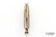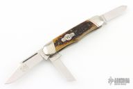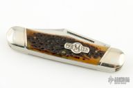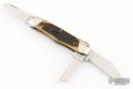 This Railsplitter features three mirror polished blades all with nail nicks.  The handle features nickel silver bolsters, liners and jigged bone covers.  Includes the original box.  Excellent condition.