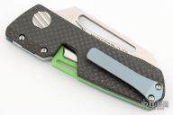 – The FACTOR also features an exclusive opening mechanism that we call the “flip lever.” The flip lever utilizes clever geometry instead of springs to assist in deploying the blade, meaning the blade is not under tension when closed. Actuation via the flip lever is “manual” instead of “automatic” in the sense that finger pressure must be applied against the flip lever to deploy the blade…
