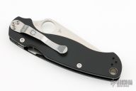 This Paramilitary 2 Linerlock Folder has a satin finished clip point blade with thumb hole and notched thumb rest. Handle is smooth black G10 with stainless steel liners and stainless steel 4-way reversible clip. Excellent condition. Comes with original box and papers.