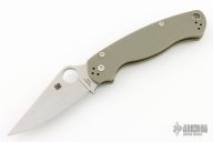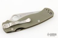 This Paramilitary 2 Linerlock Folder from Spyderco has a satin finished clip point blade with thumb hole and notched thumb rest. Handle is green G-10 with stainless steel liners and stainless steel 4-way reversible clip. Comes with original box and papers. Excellent condition.