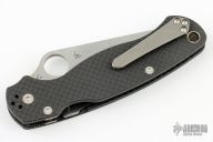 This Paramilitary 2 Linerlock Folder from Spyderco has a satin finished clip point blade with thumb hole and notched thumbrest, this knife has a M4 blade. Handle is textured carbon fiber with stainless steel liners and 3d clip. Comes with original box and papers. Excellent condition.