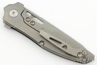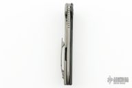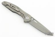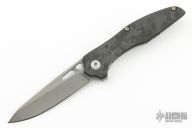 This Torrent V3 by Millit Knives features a stonewashed blade with a notched thumbrest and flipper. The handle features a carbon fiber and bead blasted titanium frame with a matching tip up pocket clip. Includes original box and COA dated 1-3-19. Excellent condition.