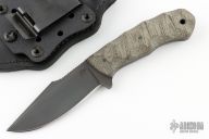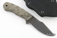 Jason Knight Design by Winkler Knives Knife Specifications Blade steel: 80CrV2 Black oxide no-glare finish Blade length: 3 1/2" Overall length: 8" Blade thickness: .189" Full skeletonized tang Thumb index file work Sheath Lined Kydex® with leather cover Spring steel, belt clip Designed for multiple carry options (See our Info page for carry options) Comes with original sheath. Excellent condition.