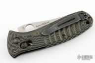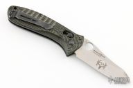 This Bone Collector by Benchmade features a stonewashed blade with a thumb hole. The handle features G10 scales over black stainless steel liners and a matching tip up pocket clip. Has light scratches otherwise excellent condition.