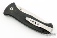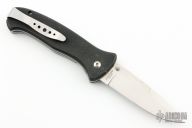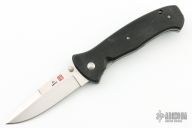 This SERE 2000 Linerlock Folder by Al Mar has a satin finished spear point blade with dual thumb studs. Handle is black G10 over stainless steel liners, and lanyard hole. Has a some light scratches and some dirt in the G-10, otherwise good condition.
