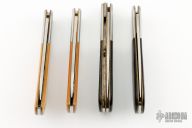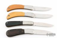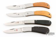These three Al Mar lockbacks have been used carried and resharpened, have scuffs and scratches, but still in good user condition. One is a slipjoint that had two blades. but one of them has broken and been ground down so you almost don't notice it. It has one working blade.