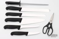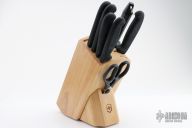 Block Set, 8 piece, includes: 4" paring, 6" boning, 8" chef's, 8" bread, 10" slicer, 10" steel, kitchen shear & #7.9093.87 slant oak block, 7 slot.