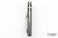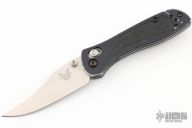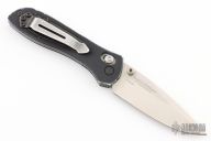 This 707 from Benchmade features a satin finished spear point blade with dual thumbstuds and a false top edge. The handle has anodized aluminum scales and black G-10 inserts, stainless steel liners, and a black backspacer. Tip up reversible stainless steel clip. Has scuffs/scratches. This knife would make a great user.
