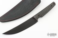 The Musashi comes with a classic style Chattanooga Leatherworks scabbard with frog in Monkey Edge signature black with contrasting red stitching.