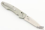 This Benchmade Osborne 771 features a satin finished drop point blade. The handle has an aluminum frame with a stainless steel pocket clip. Excellent Condition.