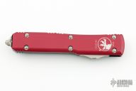 This OTF Ultratech T/E RSK 123-10, by Microtech features a tanto style blade made from Elmax steel. The handle is composed of Red and Black anodized aluminum. The pocket clip is tip down carry and is complimented with a glass breaker. Has a couple light scuffs, otherwise excellent condition. Comes with original box and papers.
