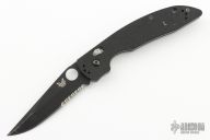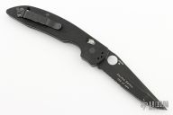This AFCK by Benchmade is #122 of 250 and features a CPM-M4 black spear point blade with partially serrated edge, notched thumbrest and thumbhole. The handle has black G-10 scales with black stainless steel liners and a 4-way reversible black stainless steel clip. Has scuffs, scratches, dings and dents. Good user condition.