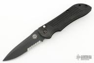 This Ares Stryker Auto by Benchmade has a black partially serrated blade, black aluminum frame with tip up stainless steel clip and a safety. Comes with original box. Excellent condition.