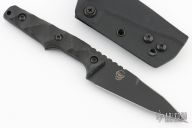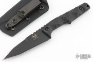 This Huginn EDC by Bawidamann Blades was named after Odin’s Raven. It features custom black cerakote finish on the double edged blade, has notched thumbrest, .101" blade stock and 1.210" blade depth, full tang construction. The handle has IM Bawidamann Chunked Pattern Carbon Fiber scales (proprietary Carbon fiber composite). Comes ready to carry with the Bawidamann Uberscabbard. Has some light sheath scuffs, otherwise excellent condition.