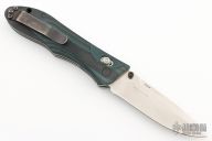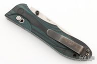 This Benchmade 735 Ares features a tumbled finished spear point style blade with dual thumbstuds. The handle has G10 scales over steel liners with a black steel pocket clip. Includes the original box. Light scuffs are visible on the pocket clip otherwise the knife is in excellent condition.