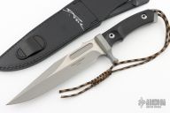 The handle and blade are separated by a hand guard, which is milled from a solid block of stainless steel using precise CNC technology. This successfully rounds off the technical appearance of the MK-8. The knotted camo lanyard supplied by Pohl Force comes from the USA and also matches the film version exactly. The knife is equipped with an extra high-quality black leather sheath including leg strap, which is personally signed by designer Dietmar Pohl. The scope of delivery includes an elaborately designed certificate, a 3D rubber patch and a care cloth. For quality control, each knife is provided with an individual serial number.