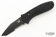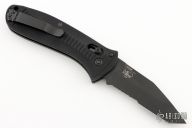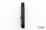 Mel Pardue design. Ambidextrous Auto Axis Pull Button Release - allows for automatic opening with either hand by pulling either Axis button back (buttons on each side of the handle). Integrated spine mount safety. Bi-directional machined handle grip for a superior sure grip. Includes original box, sheath, and paperwork. Excellent condition.