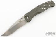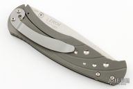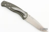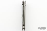 The Subrosa is a collaboration project between Ken Steigerwalt and Matt Lerch. They have patent pending status on this mechanism. They sold the manufacturing rights to Benchmade, who produces factory versions utilizing this mechanism. The key elements that make this assisted mechanism a cut above are the two titanium leaf springs connected together with a hardened roller that engages on the blade. Because the roller follows the blade during the opening and closing motion, there is little to no wear to the components. Tumble finished S30V stainless steel drop point blade with single thumb stud. Milled titanium frame with titanium barrel-type spacers, and bead blasted stainless steel tip down clip. Comes with original box and papers. Has some scuffs and scratches, otherwise great condition.
