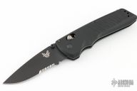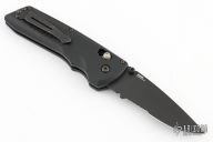 This Serum dual action folder from Benchmade features a black blade and milled black G-10 scales, stainless steel liners and tip up clip that can be positioned for right or left hand carry. Includes original packaging and paperwork. Excellent condition.