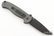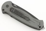 This 9051 AFO II auto from Benchmade has a black spear point blade with false top edge. Gray anodized aluminum handle. Integrated safety system. Black stainless steel clip - 4 way reversible, and lanyard hole. Comes with original box, drawstring pouch and papers. Has a couple light scuffs and scratches, otherwise excellent condition.