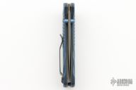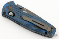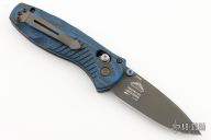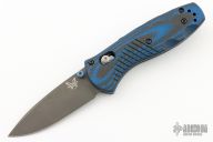 This Mini-Barrage from Benchmade features a black drop point blade with swedge and dual thumbstuds. The handle is comprised black/blue G10 scales over stainless steel liners. This knife also features the AXIS lock mechanism and sliding safety on spine. Includes original packaging and paperwork. Has a couple light scuffs, excellent condition otherwise.