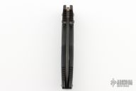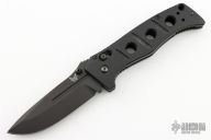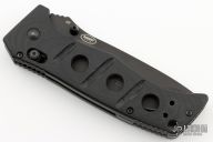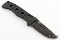 This Siebert designed 275 Adamas Axis Lock has a black D2 stainless steel drop point blade with blood grooves and notched thumb rest. Handle is black G10 over black stainless steel liners. No pocket clip. Comes with original box, sheath and papers. Excellent condition.