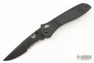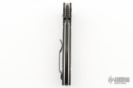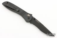 McHenry & Williams design. Axis lock mechanism. Black partially serrated blade with dual thumbstuds. The handle has fluted black G-10 scales, stainless liners and black tip up clip. Comes with original box, papers, and drawstring pouch. Excellent condition.
