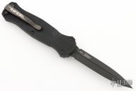 "Introducing an OTF like none-other.. The new Infidel® is rapidly making believers out of many a skeptic. Built for strength and reliability the patent pending double-action mechanics get it done over the long haul. Grab on and you will find the handle grip rock-solid with its patented machined in Presidio® style bi-directional tread pattern, and overall generous sizing for gloved hands. Intuitively pressure the release-slide forward and its spear-point edged steel fires and locks up with a unique three-point retention system with amazingly negligible blade play. Reverse the process and the blade retracts in a rapid blur of motion. The Benchmade Infidel is a special operator’s fantasy come true." Excellent condition. Comes with original box and papers. Has a couple light scuffs, otherwise excellent condition.