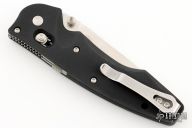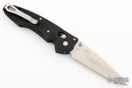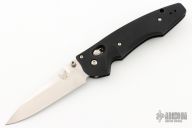 This 477 Emissary from Benchmade features a satin finish drop point blade with swedge and dual thumb studs. The handle is comprised of a black aluminum frame over a stainless steel sub frame. The blade fires out quickly with the assisted opening. Stainless steel tip up clip is reversible for left or right hand carry. Sliding safety on spine. Excellent condition.