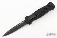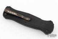 "Introducing an OTF like none-other.. The new Infidel® is rapidly making believers out of many a skeptic. Built for strength and reliability the patent pending double-action mechanics get it done over the long haul. Grab on and you will find the handle grip rock-solid with its patented machined in Presidio® style bi-directional tread pattern, and overall generous sizing for gloved hands. Intuitively pressure the release-slide forward and its spear-point edged steel fires and locks up with a unique three-point retention system with amazingly negligible blade play. Reverse the process and the blade retracts in a rapid blur of motion. The Benchmade Infidel is a special operator’s fantasy come true." Includes original box and papers. Excellent Condition.