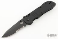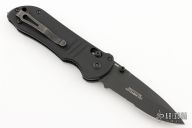 This Triage by Benchmade knives features a DLC S30V drop point blade with swedge and dual thumbstuds. The handle is comprised of milled and contoured g10 and aluminum, a carbide glass breaker at butt, and black finished stainless steel tip up clip. There is also a folding strap cutter/hook at the base of the knife. Includes the original box and papers. Excellent Condition.