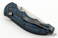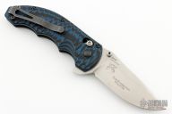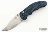 This Ball Axis lock flipper by Benchmade Knives features a stonewashed clip point blade with notched thumbrest and flipper and dual thumbstuds. The handle has black/blue G-10 scales with black stainless steel liners and tip up reversible clip. Includes the original box and papers. Excellent Condition.