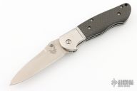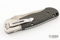This Apparition by Benchmade features a tumbled drop point blade with swedge, dual thumb studs and notched thumb rest. The handle is comprised of steel bolsters and carbon fiber handle scales over steel liners and file worked steel backspacer. The steel pocket clip is positioned for right hand, tip down carry. Includes the original box and papers. Excellent Condition.