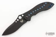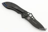 This 635BK-503 Mini Skirmish is a Neil Blackwood Design executed by Benchmade and is a limited edition. It features a black coated recurved, drop point blade with swedge, notched thumb ramp and thumbhole. The handle has a black coated with anodized milling over black barrel spacers. Black coated stainless steel tip down clip. Includes Benchmade box, papers, and drawstring pouch. Excellent Condition.