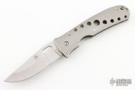 This Framelock is a Tom Mayo design executed by Buck Knives. It features a satin finished drop point blade with thumbhole. The handle hasa drilled titanium frame over titanium standoffs. Titanium tip down clip and lanyard hole in pommel.  Heavy scuffs/scratches.  This knife would make a good user.