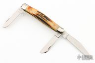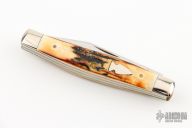 This Northwoods Knives Medium Stockman features 3 mirror polished blades with nail nicks. The handle has nickel silver bolsters and cap, stag covers with nickel silver arrow head escutcheon, brass liners and stainless steel springs. Comes with original box. Excellent condition.