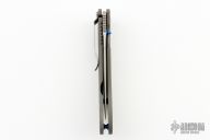 Working with Benchmade, Bradley Cutlery has produced a truly exceptional knife. From what we can tell this knife is built to last using many of the same components found in much more expensive knives. The fit and finish is beautiful. The Alias I features 6AL 4V titanium handles with blue anodized aluminum barrel spacers. Modified spear point S30V stainless blade. Monolock system (frame lock). Reversible pocket clip. Nice lockup, detent, and seating. Excellent condition, comes with original box and papers.