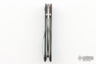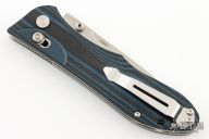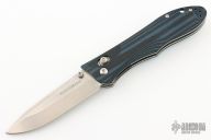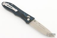 This Benchmade 730 Ares is an Allen Elishewitz design featuring a satin finished drop point blade with swedge and dual thumb studs. The handle is comprised of blue/black G10 scales over steel liners. The black coated tip up clip is reversible for right or left hand carry. Lanyard hole in pommel. Includes original box and papers. Excellent condition.
